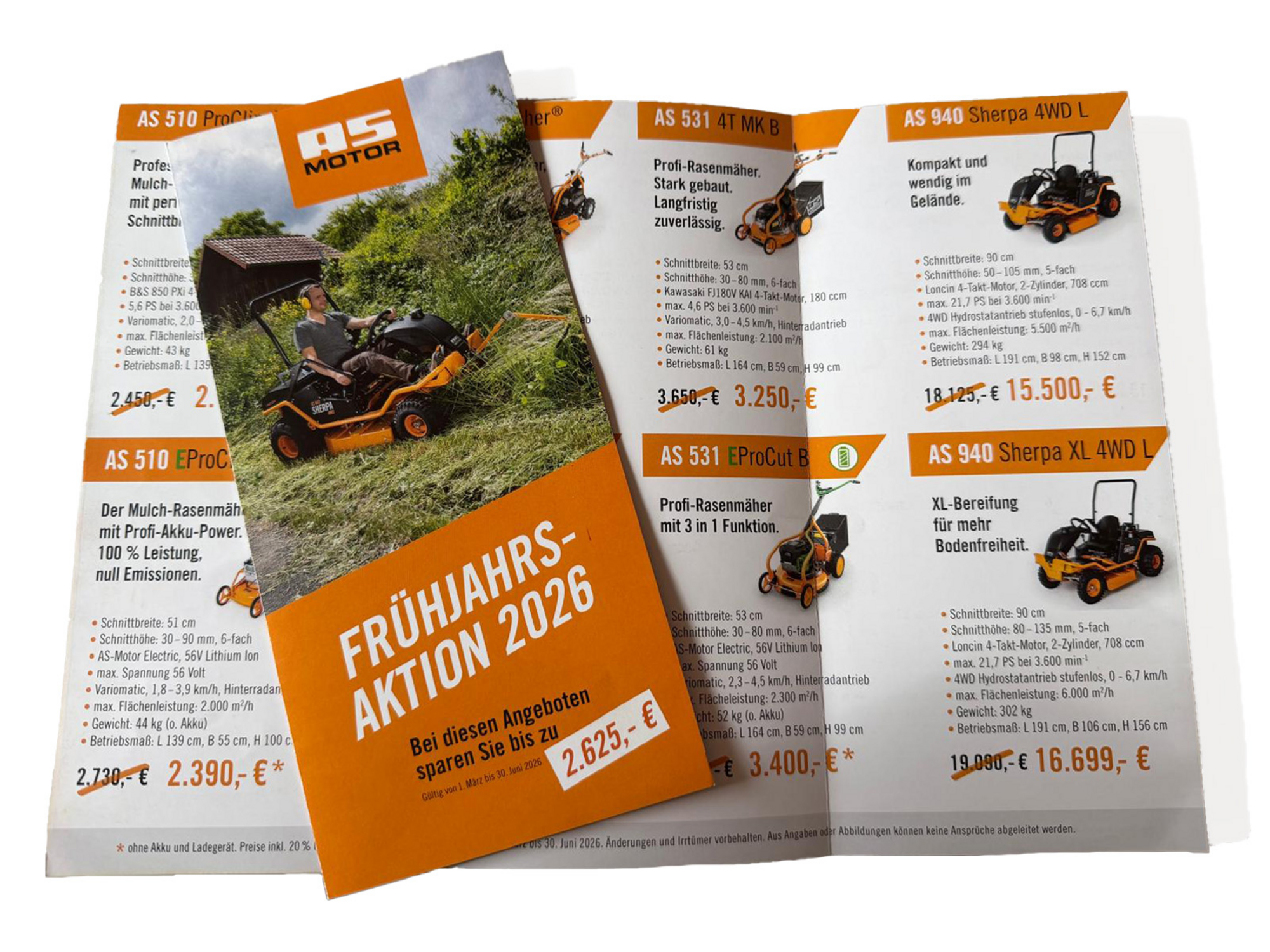 Nutzen Sie die Gelegenheit, mit leistungsstarker Mähtechnik in die neue Saison zu starten. Ob für hohe Wiesen, steile Hänge oder große Flächen – AS-Motor bietet die perfekte Lösung für jede Herausforderung.